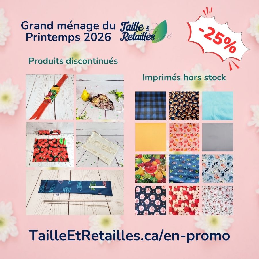 Taille & Retailles priorise la simplicité et l’efficacité, et se distingue par des détails pensés avec soin, tels que des coutures retournées, des étiquettes d’identification et des tissus lavables en machine, offrant ainsi des produits pratiques et écologiques. En utilisant des tissus colorés et ludiques, Julianne Courtois, couturière propriétaire, vise à rendre l’utilisation de ses produits agréable tout en contribuant à un mode de vie plus respectueux de l’environnement.